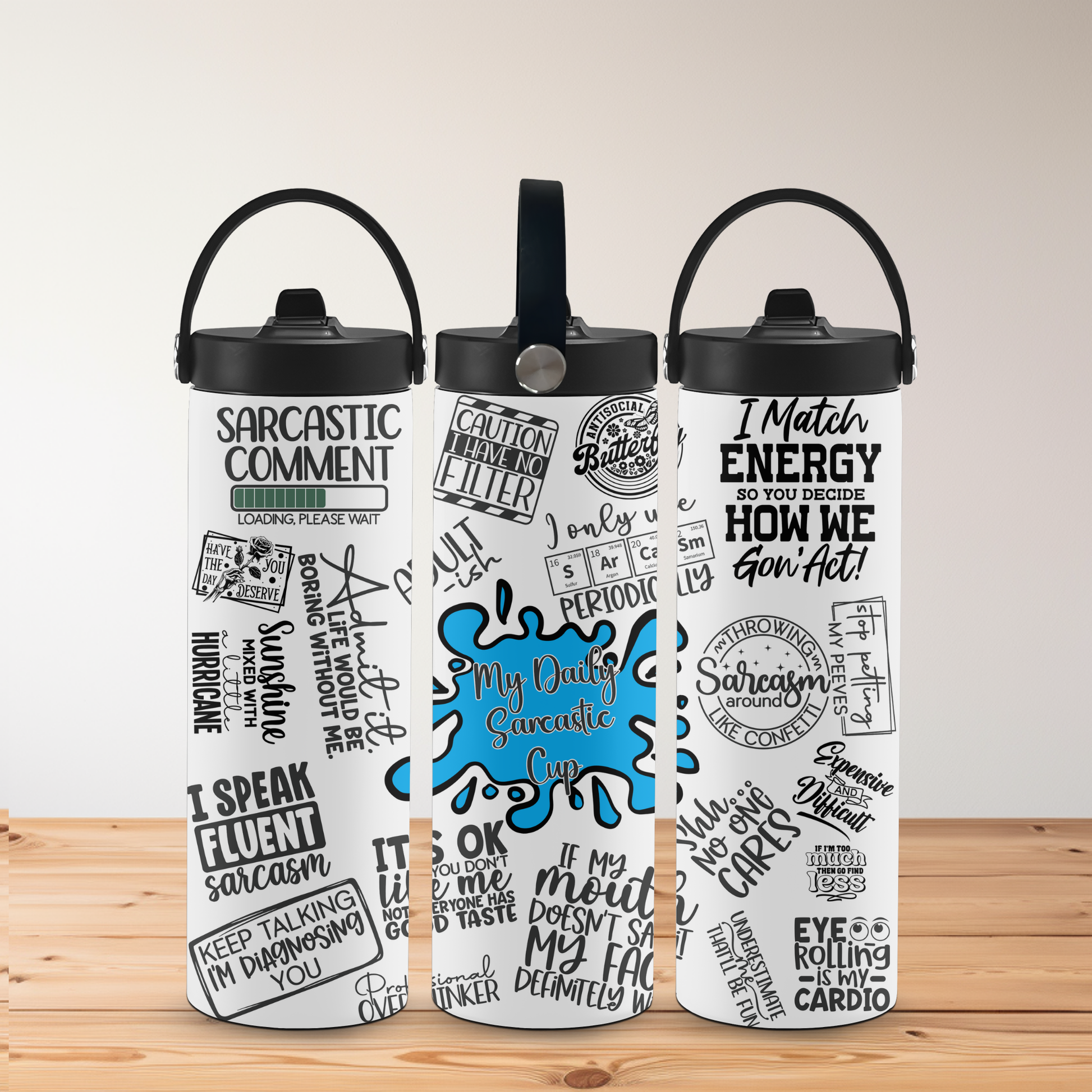 💬 For those who speak fluent sarcasm and sip with attitude – this 20oz tumbler is your new best friend. Covered in a collection of cheeky, eye-roll-worthy, and totally relatable sarcastic quotes, this tumbler is guaranteed to get a laugh (or an eye roll) wherever you go.