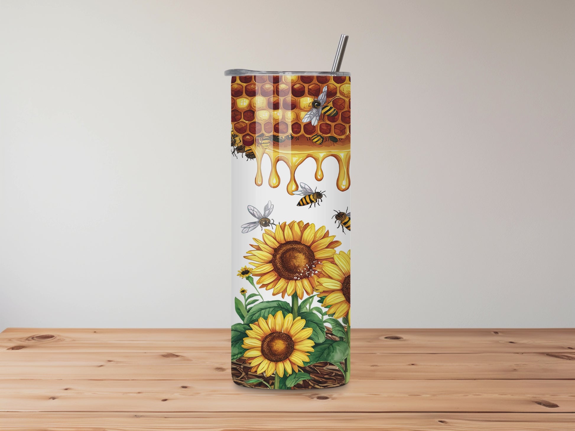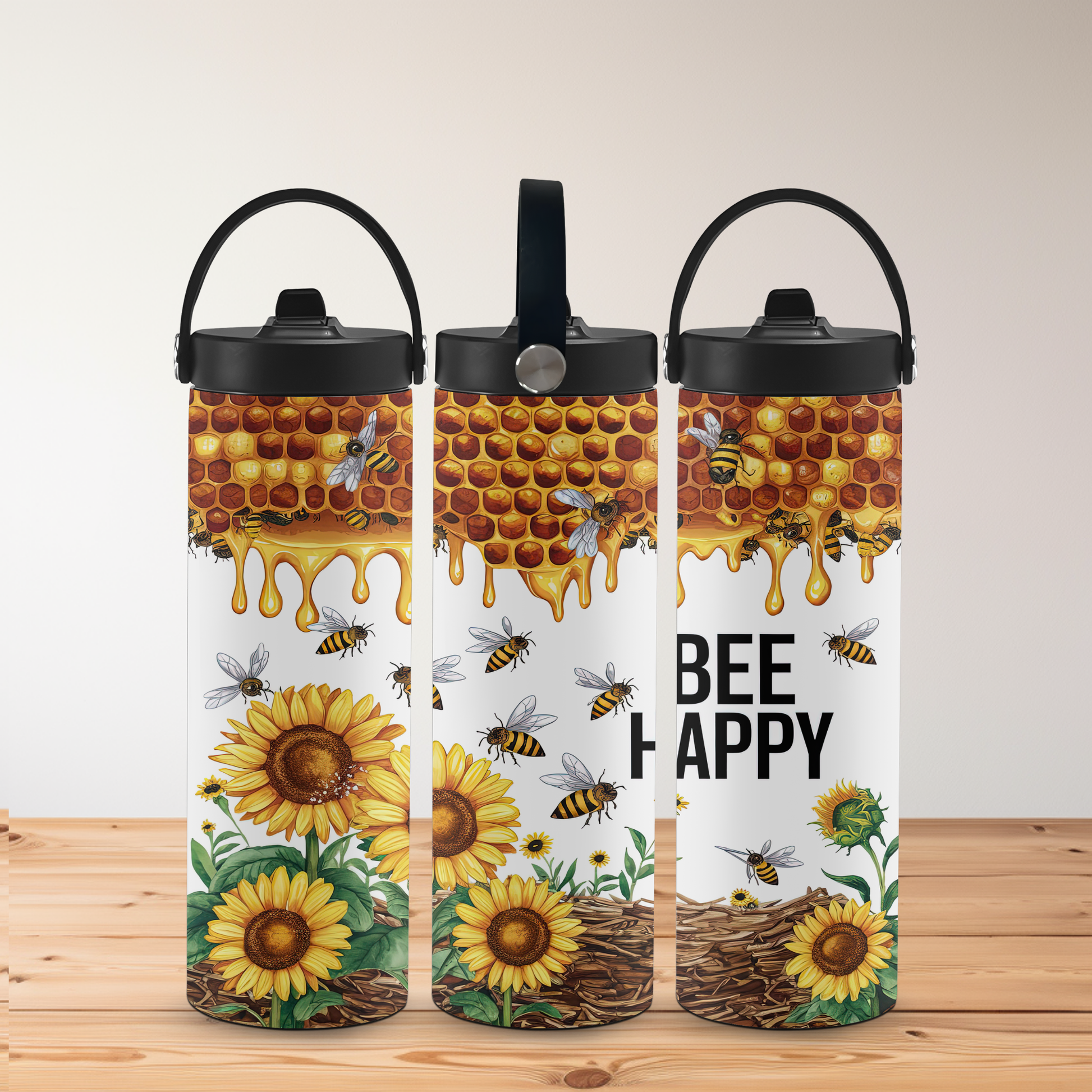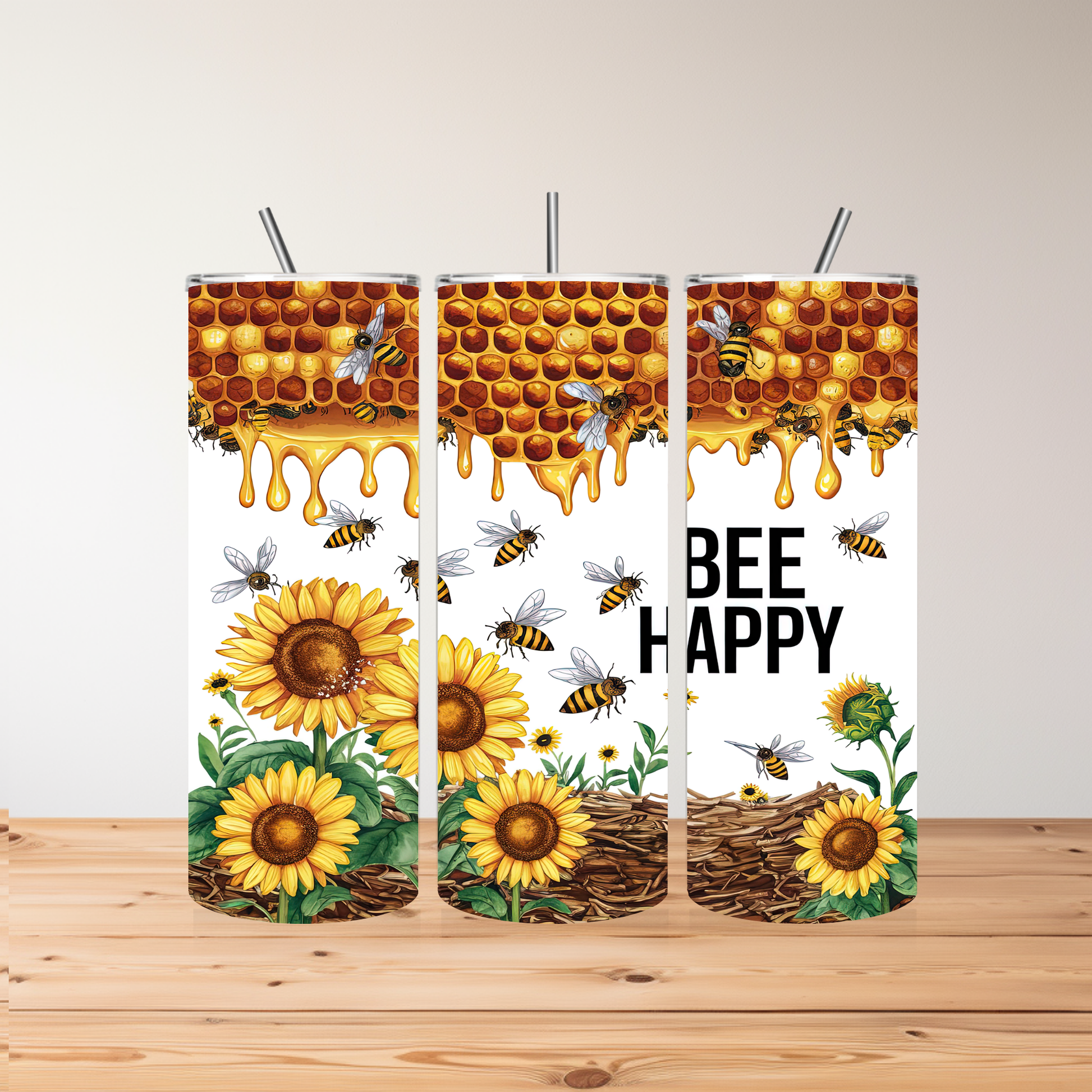"Bee Happy" 20oz Stainless Steel Tumbler – Bee & Sunflower Design