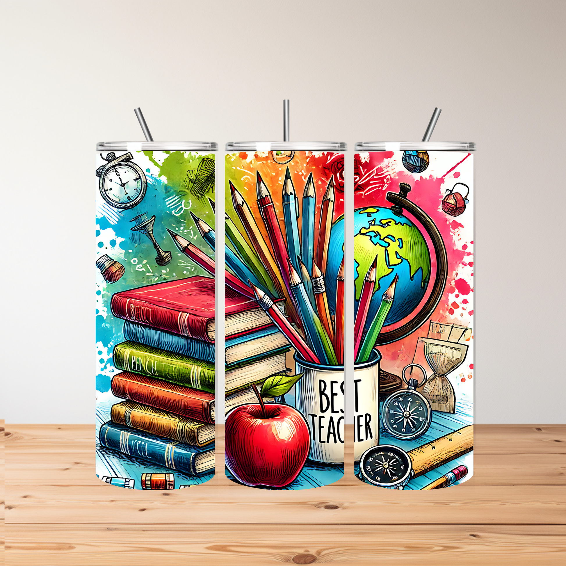 Best Teacher 20oz Tumbler – School-Themed Design with Educational Icons | Personalised Gift for Teachers