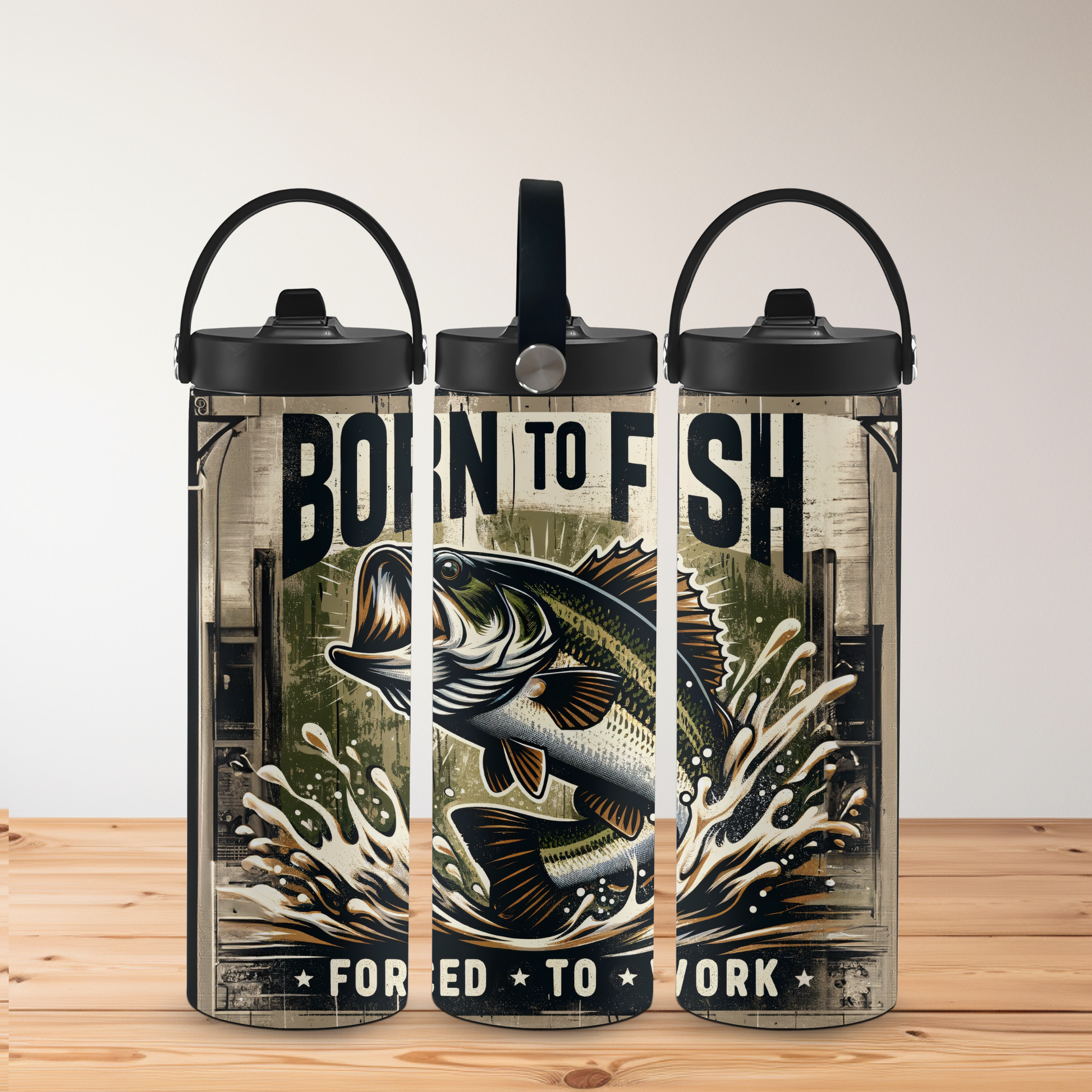 🎣 Love fishing but stuck at work? Now you can show off your passion wherever you go with our "Born to Fish, Forced to Work" 20oz Tumbler! Durable, stylish, and fully functional — perfect for any fishing enthusiast.