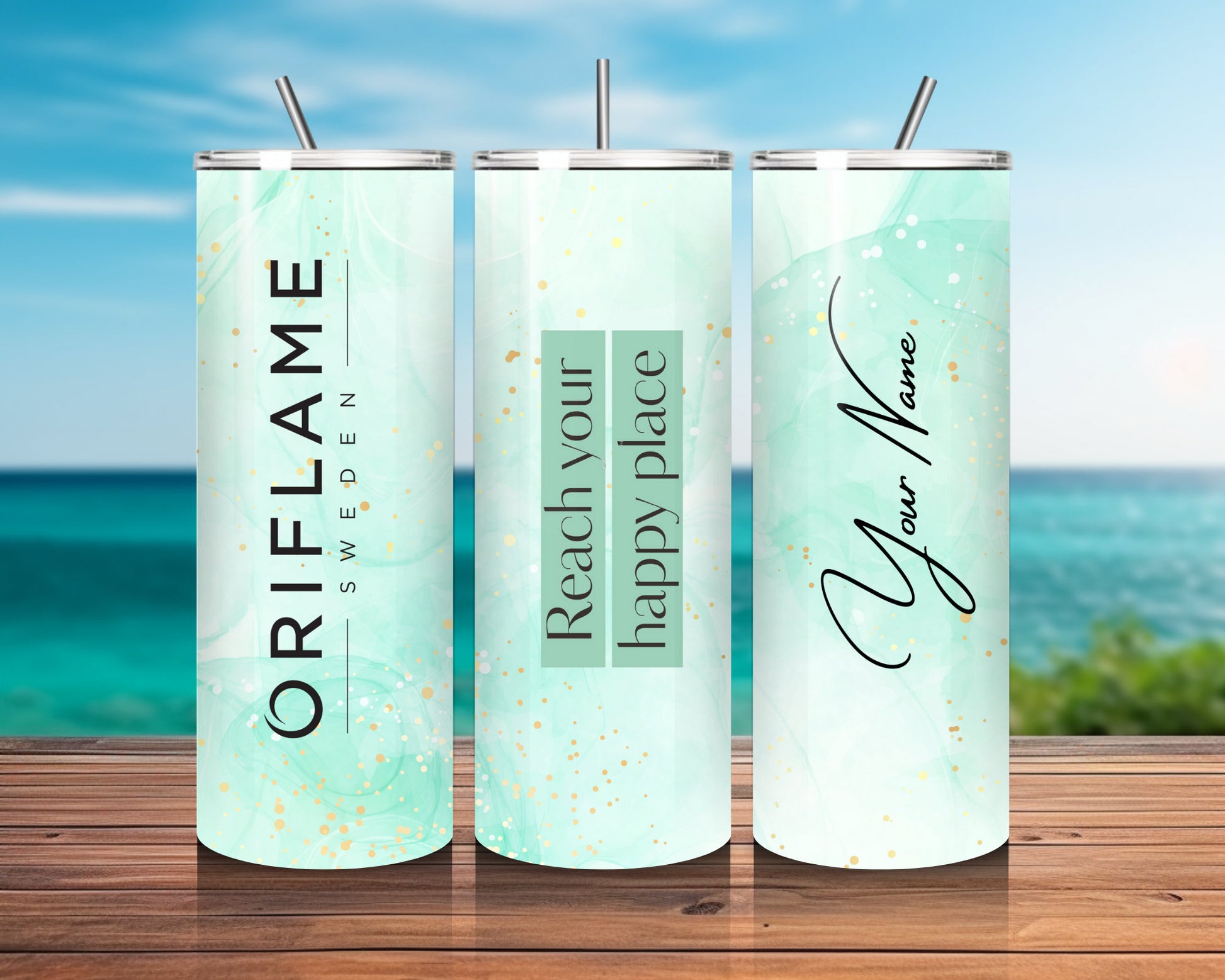 Stay refreshed in style with our exclusive Oriflame branded personalised tumbler! This premium tumbler is perfect for keeping your drinks at the ideal temperature while showcasing your unique style.