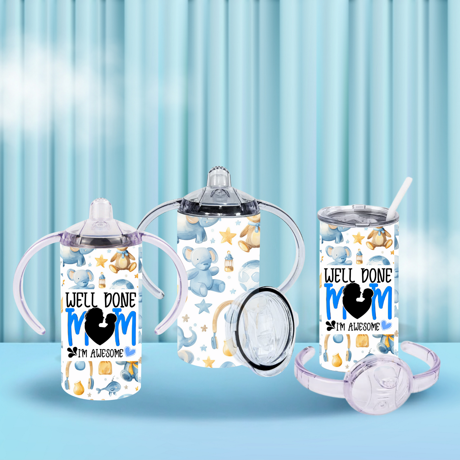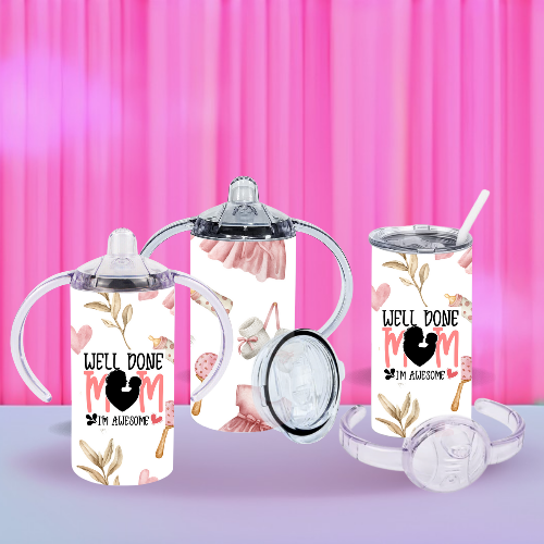 Funny 12oz Sippy Bottle – "Well Done Mum, I’m Awesome" | Baby Gift | 2 Lids