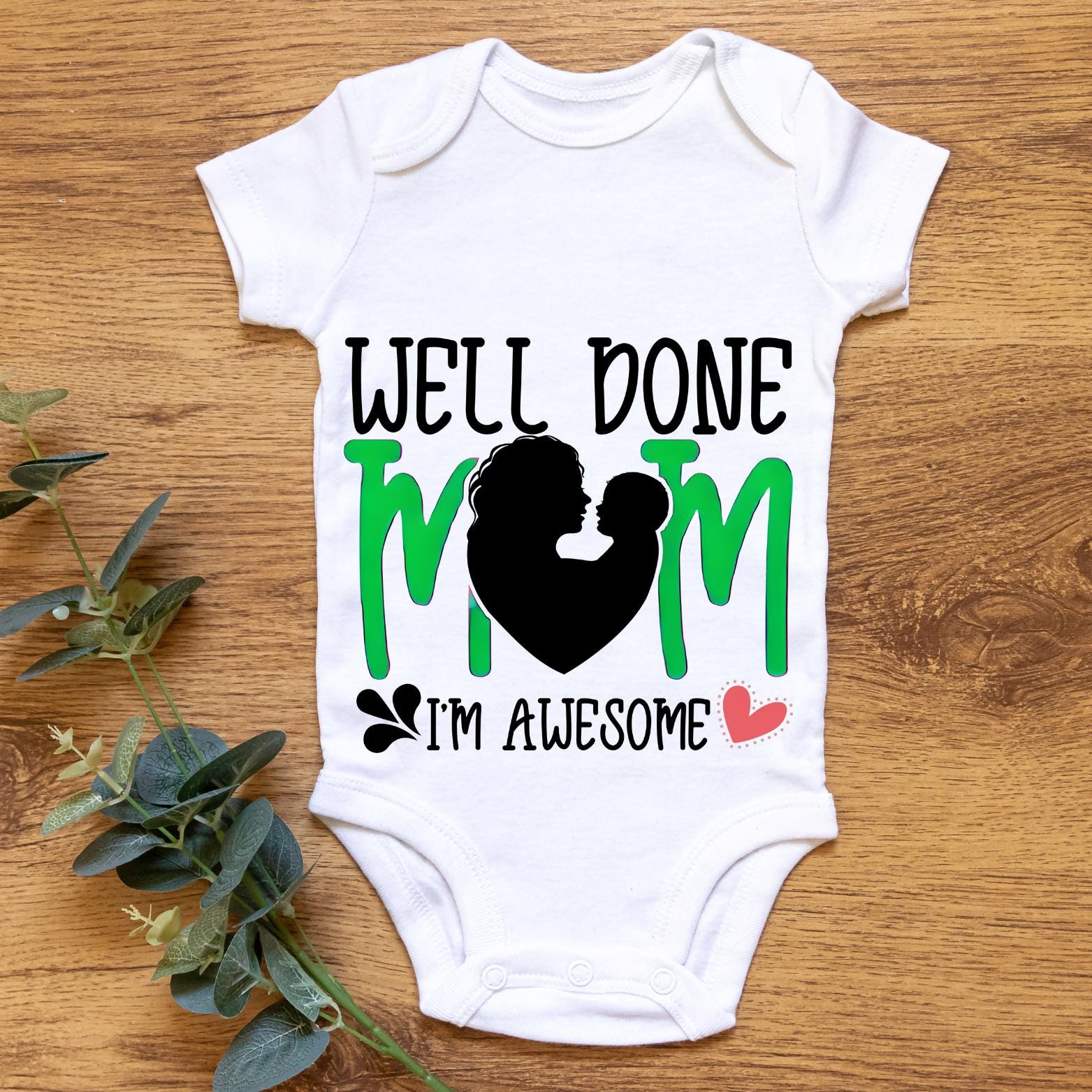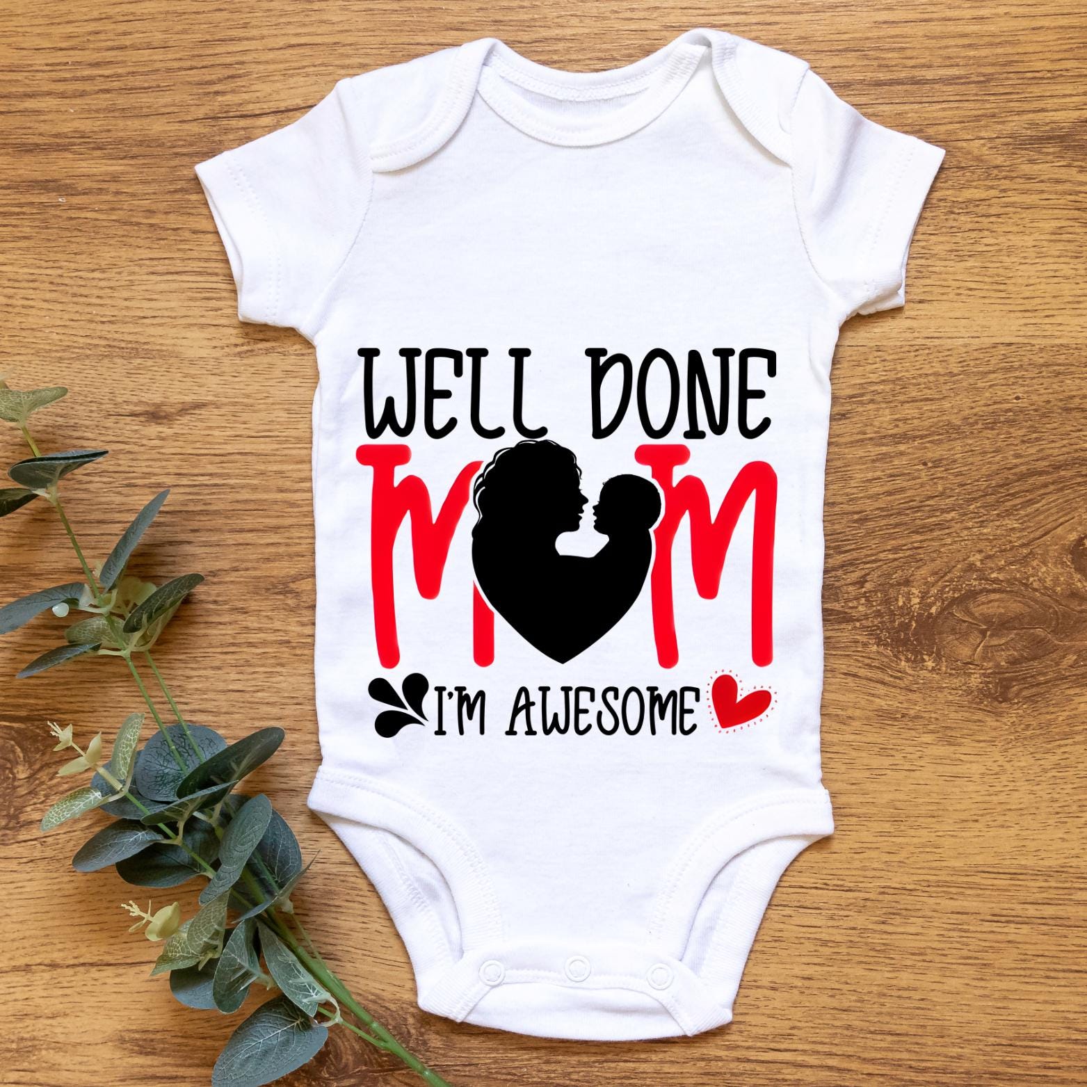 Funny Baby Vest – "Well Done Mum, I’m Awesome" | Mother’s Day Gift | New Mum Present