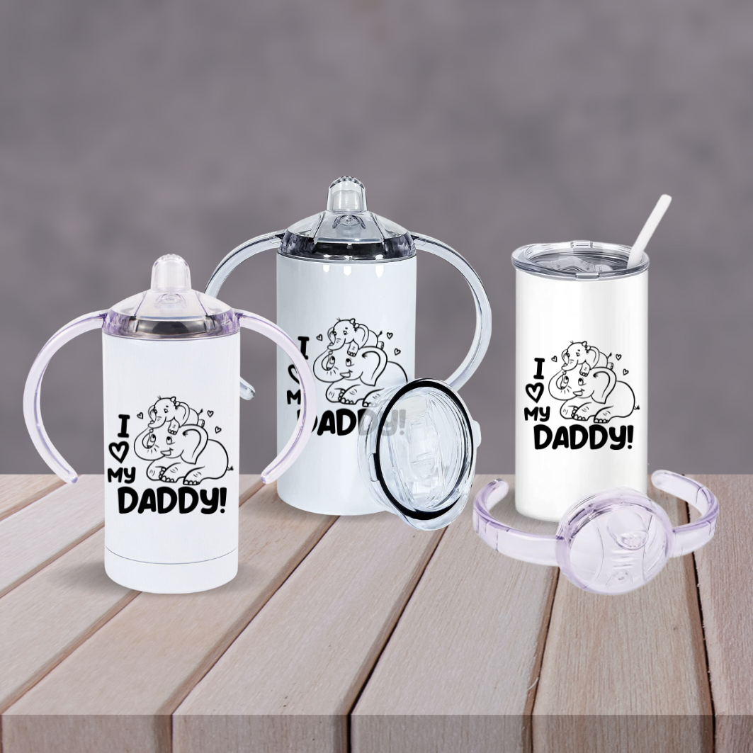 “I Love My Daddy” Elephant Sippy Cup – Personalised Stainless Steel with 2 Lids
