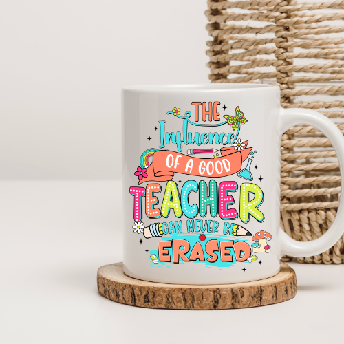 Inspirational Teacher Mug – “The Influence of a Good Teacher Can Never Be Erased” – 11oz Ceramic – Personalised Option