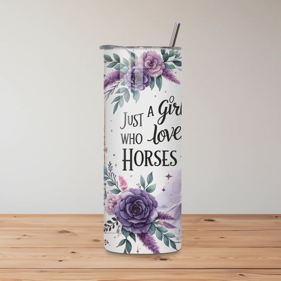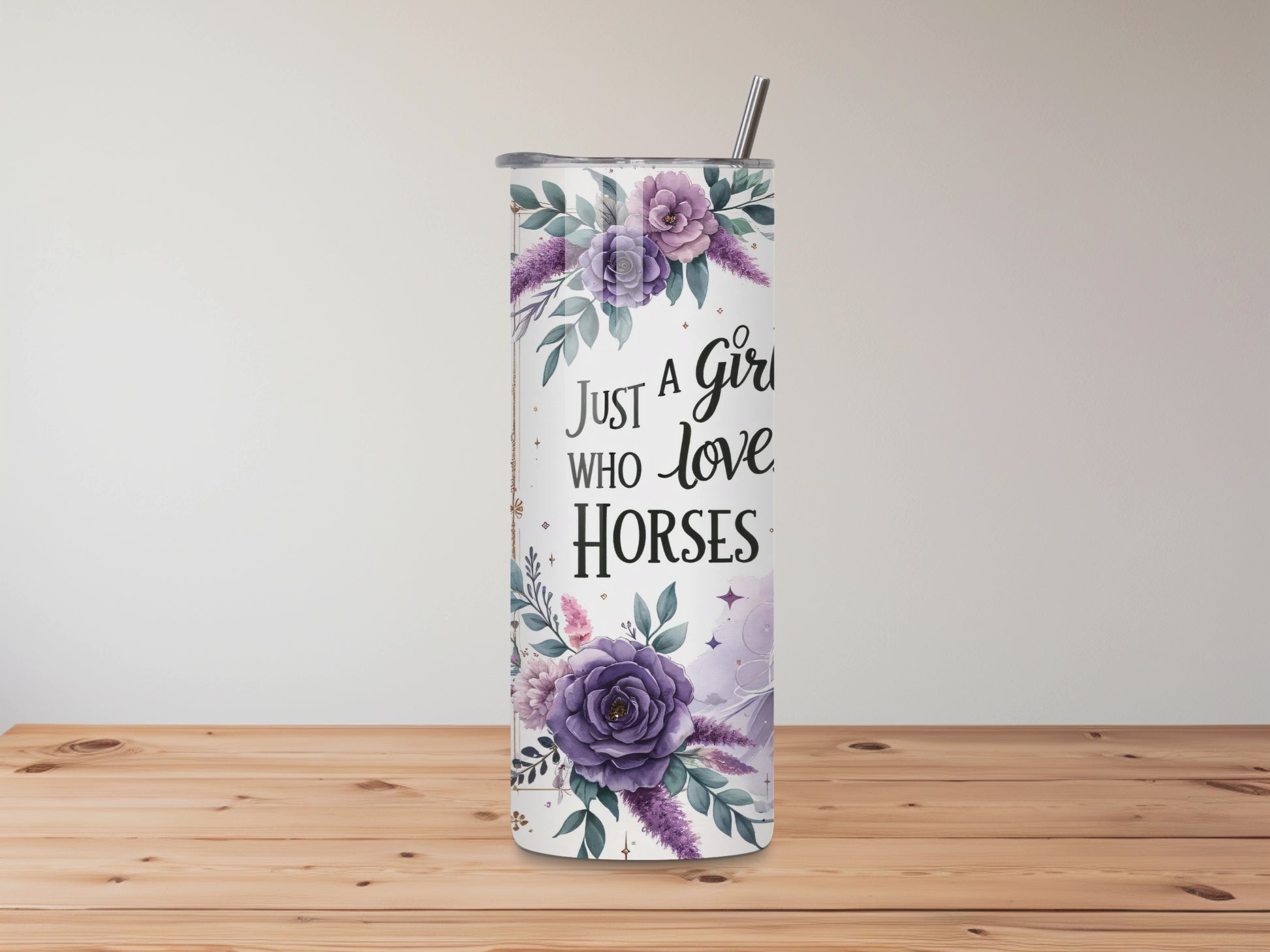 Just a Girl Who Loves Horses – 20oz Tumbler with Pink & Purple Floral Horse Design
