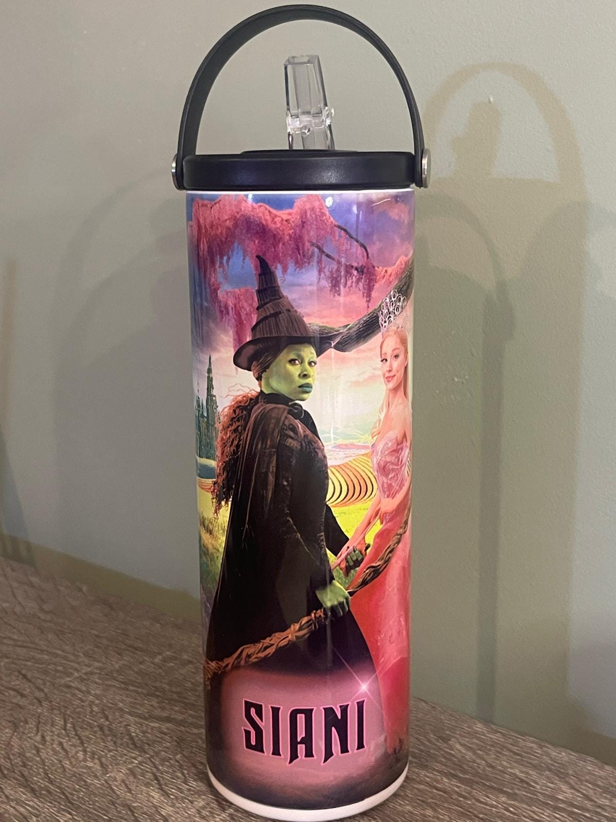 Embrace the magic with this Wicked-inspired tumbler! Perfect for fans of the highly-anticipated new movie, this sleek and stylish tumbler features a vibrant design celebrating the enchanting world of Wicked.